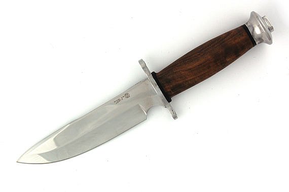 ТТХ тип стали: порошковая быстрорежущая сталь Bohler S290 химический состав стали: С 2%, Mn 0.30%, Cr 3.8%, Si 0.50%, V 5.1%, Mo 2.5%, W 14,3%, Со 11% твердость клинка: 70 НRC ВНИМАНИЕ! Клинок не рекомендуется использовать при сильных боковых нагрузках из-за высокой твердости стали. длина клинка: 135 мм. ширина клинка: 32 мм. толщина клинка: 4,2мм подводы РК: 0,5-0,6мм поверхность клинка: антикоррозионное твердое покрытие, цвет: серый спуски: прямые длина рукояти: 135 мм. монтаж рукояти: всадной на резьбе материал рукояти: стабилизированный граб комплектация: нож, ножны, сертификат качества цвет ножен: коричневые Utile dulci miscere (лат.) — Соединять приятное с полезным.