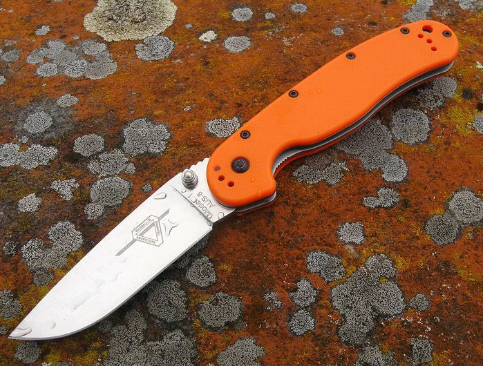 Отличный нож, рекомендую! Точить- не точил, конечно алмазами если придется. Трудностей в заточке не вижу, алмазных брусков различной гритности море. Веневский завод алмазного инструмента. Добавлено спустя 15 минут 31 секунду: Продолжаем Кизляр ДВ-1. Хотел купить нож Самсонова. Покрутил в магазине сравнил, более этот понравился. Доборный, серьезный нож. Заводская заточка Характиристика Полная длина 305мм Толщина лезвия 5.2 мм Ширина лезвия 39 мм Геометрия клинка копьевидная, на обухе дополнительная заточка Материал клинка 50Х14МФ Обработка клинка полированный Твердость 56-58 HRC Рукоять стальные гарда и навершие, кавказский орех Толщина рукояти 27 мм Конструкция цельнометаллический хвостовик, идущий по всей длине рукояти, винтовая сборка Ножны/чехол поясные ножны из натуральной кожи Вес без ножен 416 г Вес с ножнами 538 г Относится к холодному оружию Добавлено спустя 8 минут 8 секунд: Продолжаем Spyderco Military Всегда хотел купить, купил - 16 тонн, дорого конечно, но жить ваще дорого! Рекомендую, не пожалеете! Технические характеристики Spyderco Military G-10 Вид Карманные Тип Складные Тип замка Liner lock Общая длина 241 мм Длина клинка 102 мм Толщина клинка 4 мм Клинок S30V Материал рукояти Стекловолокно G-10 Вес 120 г Добавлено спустя 14 минут 35 секунд: Говорил же, тема провокация Ножи мои, отвечаю! Фото не мои. Продолжаем Ontario RAT Folder Недорогой, в машине ездит. Удовлетворяет на 100% цена-качество. Нравиться такая раскраска. Это уже 3 нож, 2 подарил друзьям. Полгода эксплуатации держит, заточка легкая. Тип замка Liner Lock Тип заточки Plain Твердость стали по шкале Роквелла 58-59 HRC Размер ножа в сложенном состоянии 12 cm Переставляемая клипса Толщина клинка 3 мм Сталь AUS-8 Длина клинка 8.89 cm Размер ножа в раскрытом состоянии 21.6 cm Utile dulci miscere (лат.) — Соединять приятное с полезным.