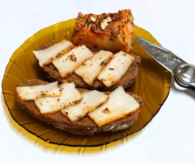 Домашное сало с черным хлебом - простое человеческое счастье! (Очень быстро сфотографировал и съел).