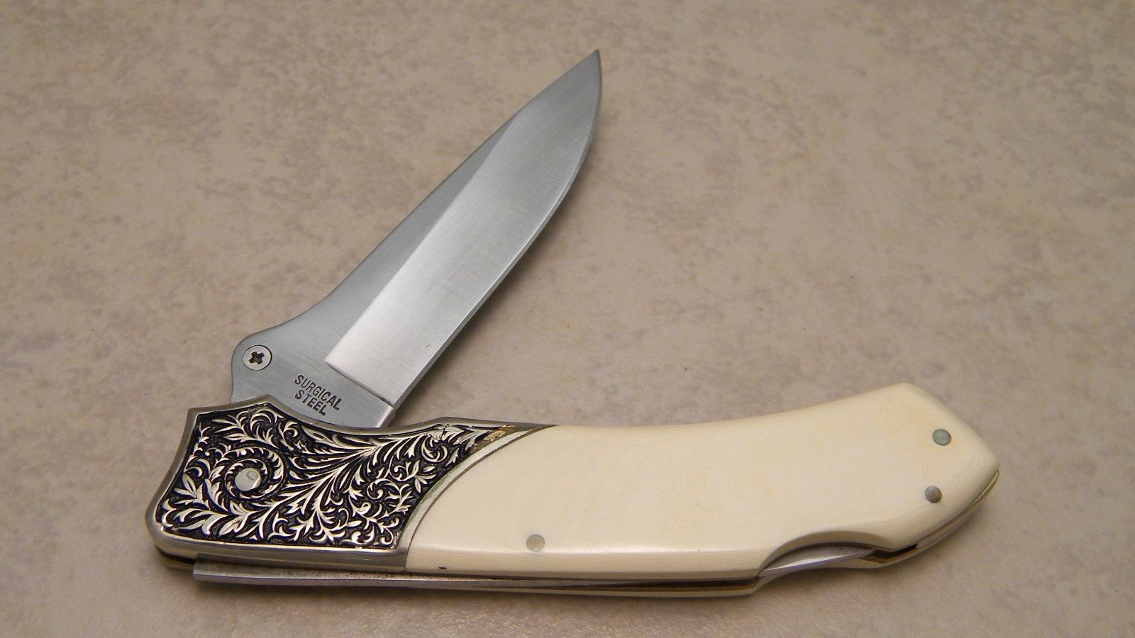 Frost Cutlery Surgical Steel Micarta Lockback Knife Ducks Etch Utile dulci miscere (лат.) — Соединять приятное с полезным.