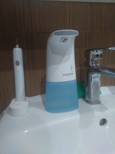 Дозатор для жидкого мыло. Нужен лиСенсорный, конечно, приятно выглядит. Но в Финляндии такой же очень долго выдавал порцию мыла. Заряжать, судя по роликам на ютубе, можно и нужно. Питается от 4 АА-батареек.