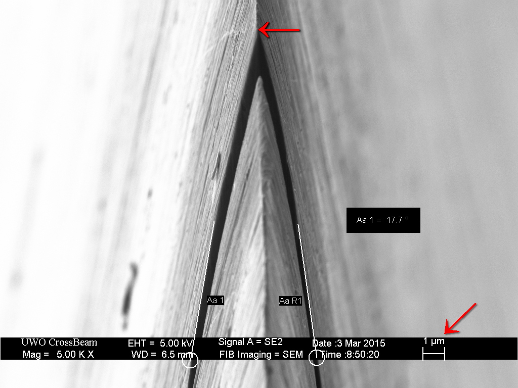 широкая узкая режущая кромкаЯ думаю, что не надо ходить вокруг да около. Все очень просто. Как и все вы, Бронсон хорошо понимает что представляют фаски режущей кромки. Они могут быть широкие или узкие. На остроту это не влияет. Как и все вы, Бронсон хорошо понимает, что режущая кромка – это стык фасок под определенным углом. Бронсон, дружище, если речь идет строго про РК, ты некоректно задал вопрос. Режущая кромка не может быть широкой или узкой. С точки зрения заточника, РК может иметь большой или маленький радиус скругления. Когда радиус скругления большой – это тупая режущая кромка, когда радиус скругления очень маленький – в десятых долей микрометра – тогда это называется острая РК. Вот фото острой РК – увеличение 5 тысяч раз. Источник: https://scienceofsharp.com/page/9/ С 2013 г. с кайфом бреюсь опасной бритвой пять раз в неделю, в три прохода.
