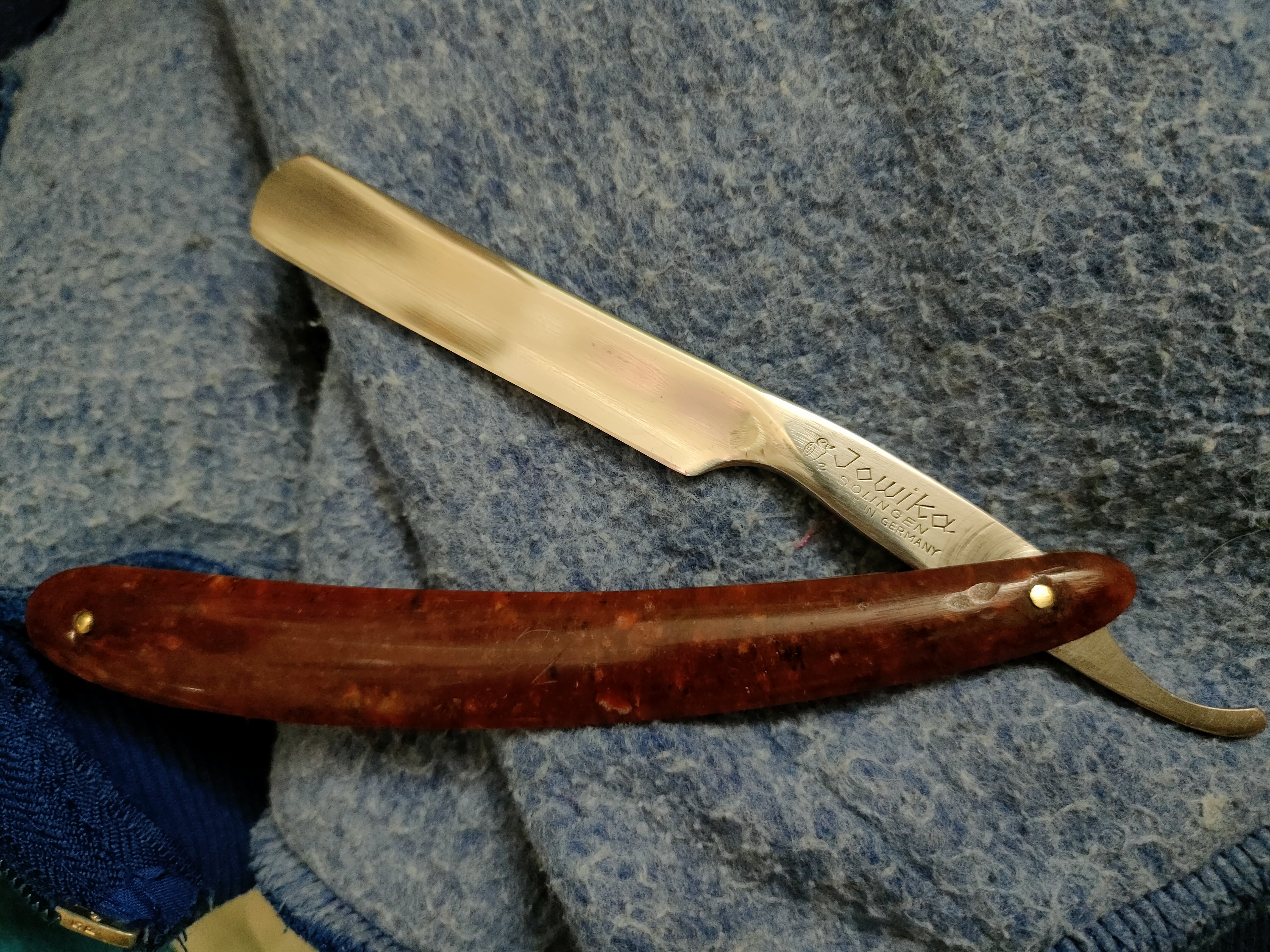 Правда пришлось сточить вместе с царапинами оригинальную гравировку, впрочем ее и было почти не видно. И я любитель французской формы бритвы, так что как смог переделал немца во француза. Результат - выглядит веселее, бреет не плохо