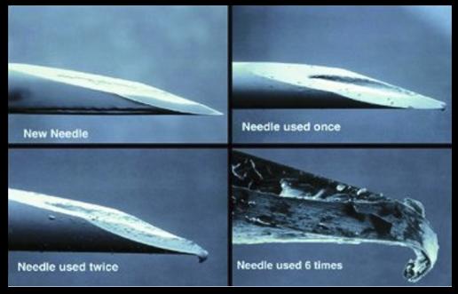 Re: Заточка иглы для шприцаа для чего точить инсулиновые иглы? шприц идет с иглой. если колоть стабильно одним шприцем, то понятно. Но это ж пардон антисанитария. раньше шприцы стеклянные стерилизовали и иглы были многоразовыми, соответственно тупились и полагаю можно было заточить, но не думаю что кто-то заморачивался. опасное дело, вдруг какой заусенец попадет в кровоток?