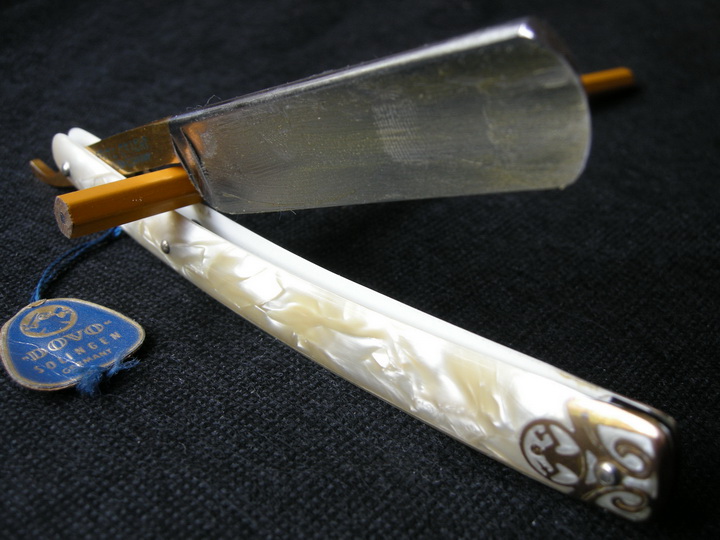 внешне, но сильно побитую ржавчиной в Штатах, продавец пишет что 60х годов. Насчет буковок ничего не скажу, а царапины на лезвии завтра проверим - смою смазку и будем посмотреть. Лезвие померял 5/8" имеют место быть, меня больше смущает пластмассовый футляр, я точно не знаю когда они появились, но думаю явно позже 70х. Юмор насчет 263$ оценил, да 10000 руб. это, тоже из области фантастики, поставлю я ее 3000 руб. на старт. а там жизнь покажет Добавлено спустя 9 минут 17 секунд: В "Контактах" состоять религия не позволяет, так что там вопросы задавал бывший владелец этого девайса Re: Оцените бритвуДа тут и юмор и нет. Как подашь. Под каким соусом. Ресурс то на котором собрался продать отличается фантастическими описаниями.. Ну из разряда: личная бритва Гитлера и тому подобных. Так что.. Ну а так реально за 100-120, если действительно новая. Re: Оцените бритвуЗавтра вскрытие покажет, если под смазкой таки будут царапины - аккуратно уберем, чехол и бирку выбросим и т.к. я человек по своей природе совестливый , буду продавать как обычную трофейную бритву, которая досталась дедушке охранявшему от мародеров замок Геринга в Восточной Пруссии