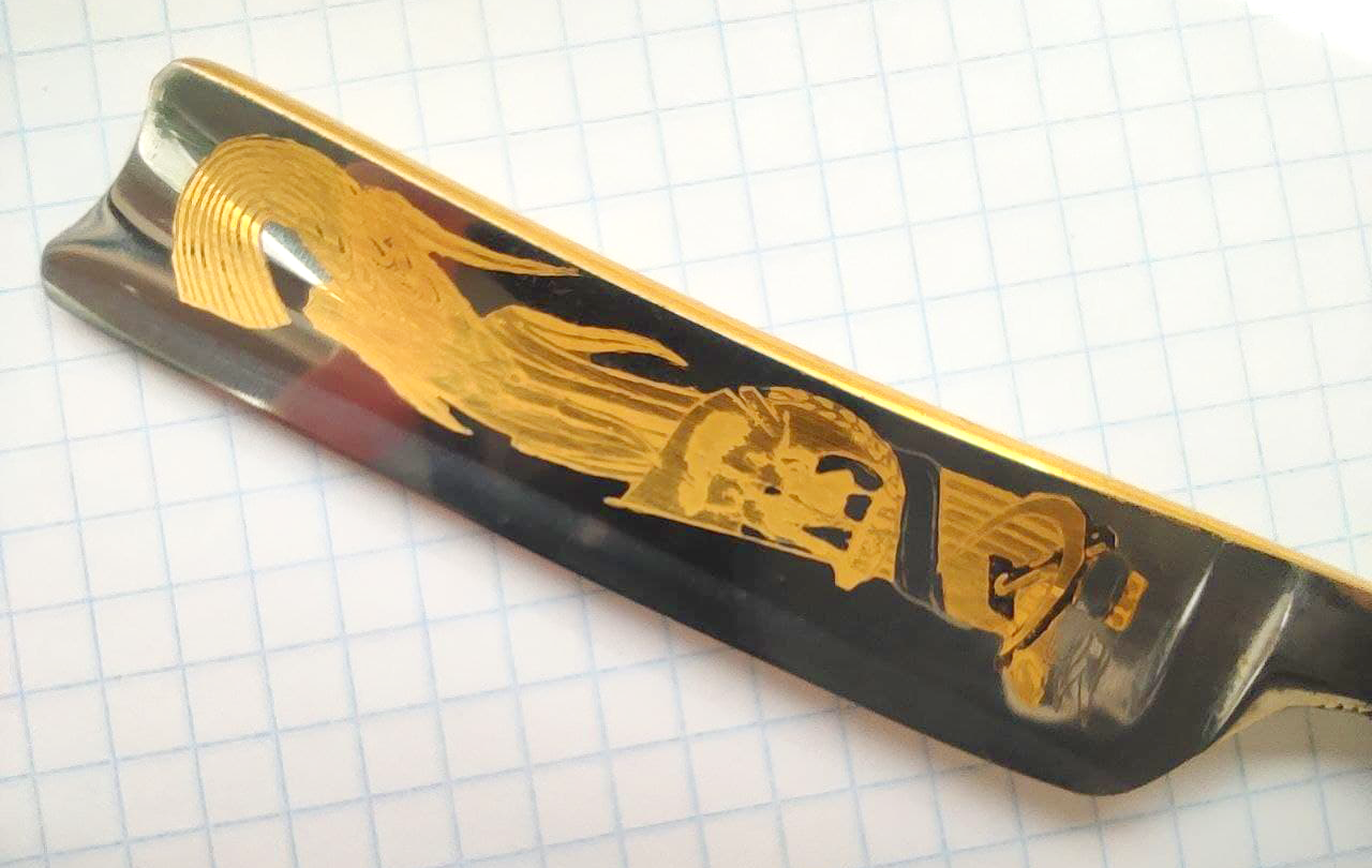 Уважаемые знатоки, прошу вашей помощи в оценке степени редкости и стоимости данной бритвы. В результатах поиска "Гугла" имеются подобные но не аналогичные. Заранее спасибо всем откликнувшимся.