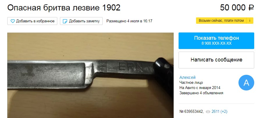 Речь вот об этом идет (только что скопировал с авито, висит неделю!): и таких полным полно объявлений. забегал тут один, ему оценили бритву в 3 000р, но он все равно выставил ее за 50 000, да еще обиделся на всех нас. Как водится, срач начался, тему удалили. Самое обидное, что подобные бритвы выставляют по 4-7 тысяч, думаю просто так - потому что другие по этой цене что-то подобное продают, хотя цена ей 700р в базарный день. И попытка обобщить оценку - это подсказка и горе покупателям, которые на это ведутся и горе-продавцам,которые выставляют "как все" в попытке срубить деньжат. Оценка стоимости клинковых бритвanton, и как ПО ему бы помогло? Резко разбудило совесть? Нет же, невозможно это. А вот в заблуждение вводит. Вот прошу цену по внятным критериям, никто посчитать не може. Иди говорят на Али, сам ищи