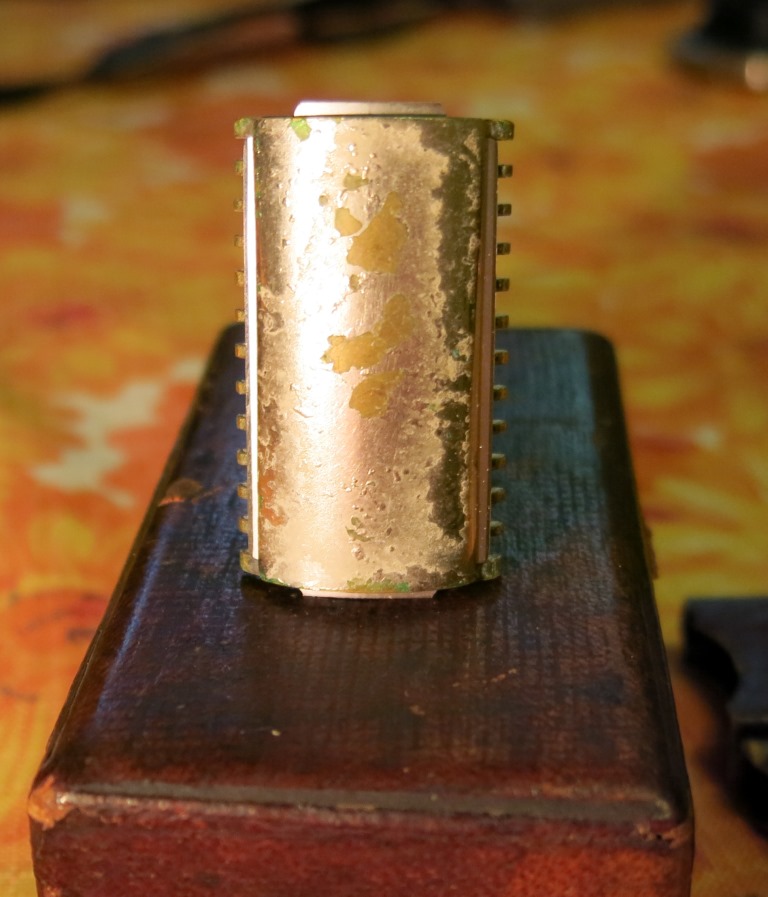 В 1904 это патент в Америке, а во Франции скорее всего позже начали выпускать. Да, вещь неординарная, потому что Дабл Ринг выпускали то ли четыре, то ли пять лет. Лень смотреть. Но если открыть таблицу дат и моделей Жиллетта, то там все прописано. После Дабл Ринг пошел Сингл Ринг, и этих уже побольше и намного. Состояние покрытия никакое. А покрывались эти станки тогда серебром. Везде, не только верхняя часть. Весь станок дожен быть покрыт серебром. Надо еще посмотреть, а нет ли трещин. Ну и классический белый налет от прошлых хозяев. Вообще-то Дабл Ринг редкое явление на ибэе, соответственно и цена выше, но там еще все от номера зависит. Вот номер-то и определяет год выпуска. Номер обычно располагался либо на верхней части гребенки, либо на боковой части нижней втулки. Re: T-образный француз 19 века?В вопросе век исправил на 19