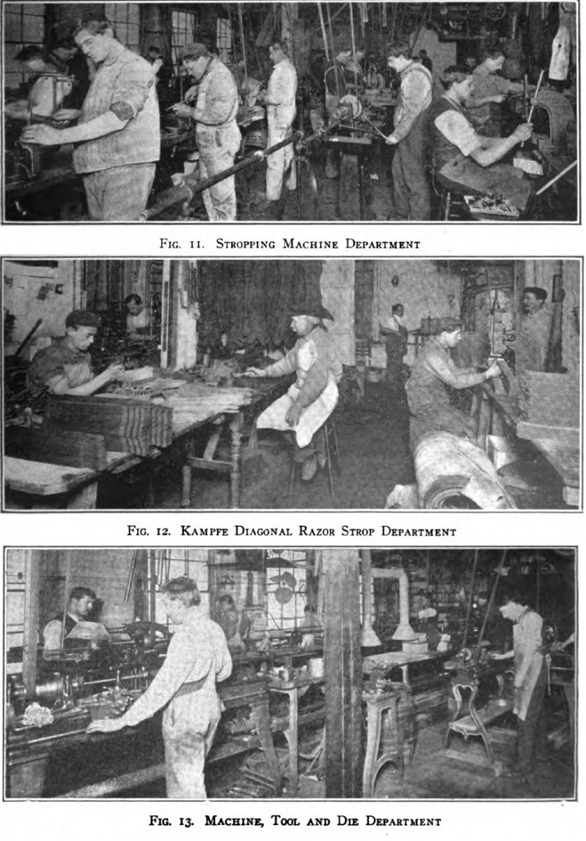 На иллюстрациях видны несколько из многих процессов, используемых в производстве бритв «Star» и аксессуаров. Большинство машин, используемых на этом заводе, являются продуктом изобретательности Kampfe Brothers и построены на месте.