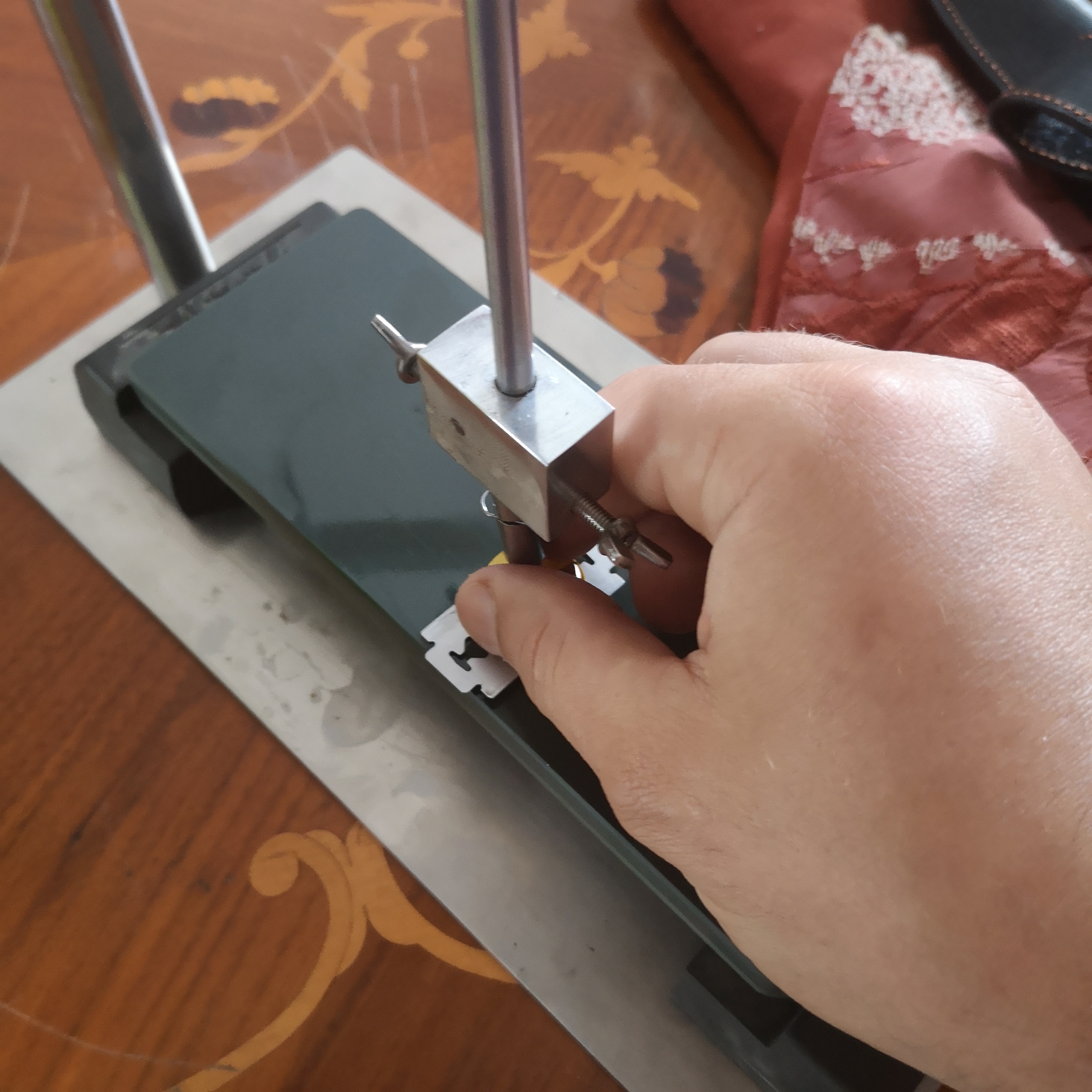 Но первое бритье после переточки было отличным. Как я точу бритвы для Т-станкаУгол выставляется просто при помощи угломера, позже буду дома, если интересно, то покажу как.