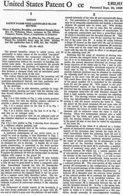 Gillette adjustable - "вид изнутри".Немного истории: заявка на патент был подана 19 марта 1956 года и выдана спустя четыре с половиной года - 20 сентября 1960 года (№ 2952911).