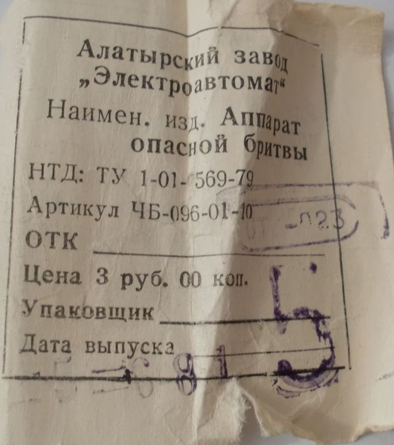 Re: Бритвенный станок АЛАТЫРЬ made in USSRСпециальные не делали, туда вставляется половинка двухстороннего лезвия