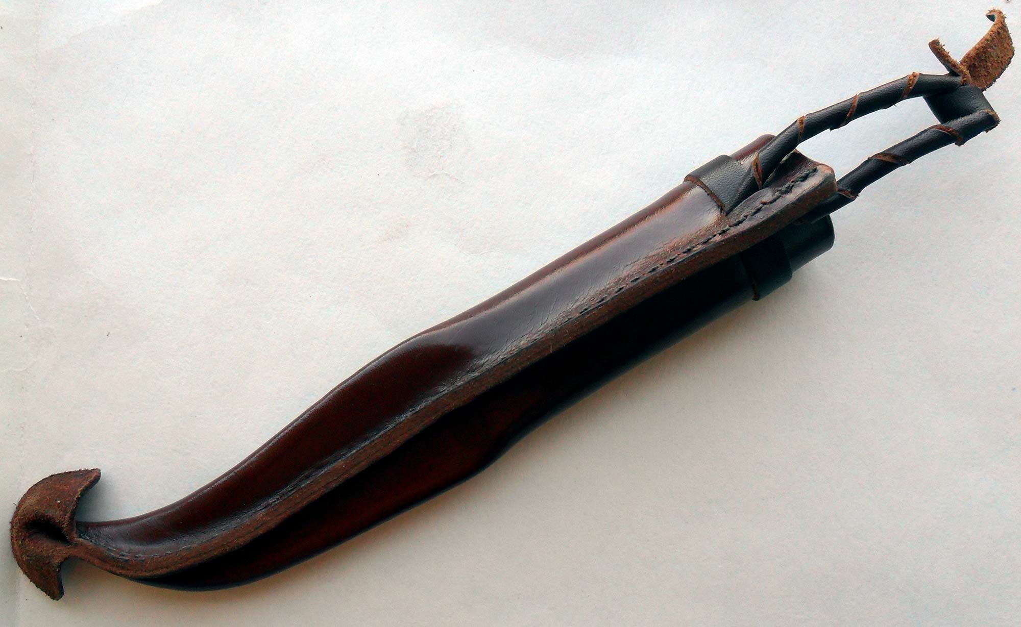 На фото не удалось передать настоящий цвет кожи ножен, в реале он более рыжий.