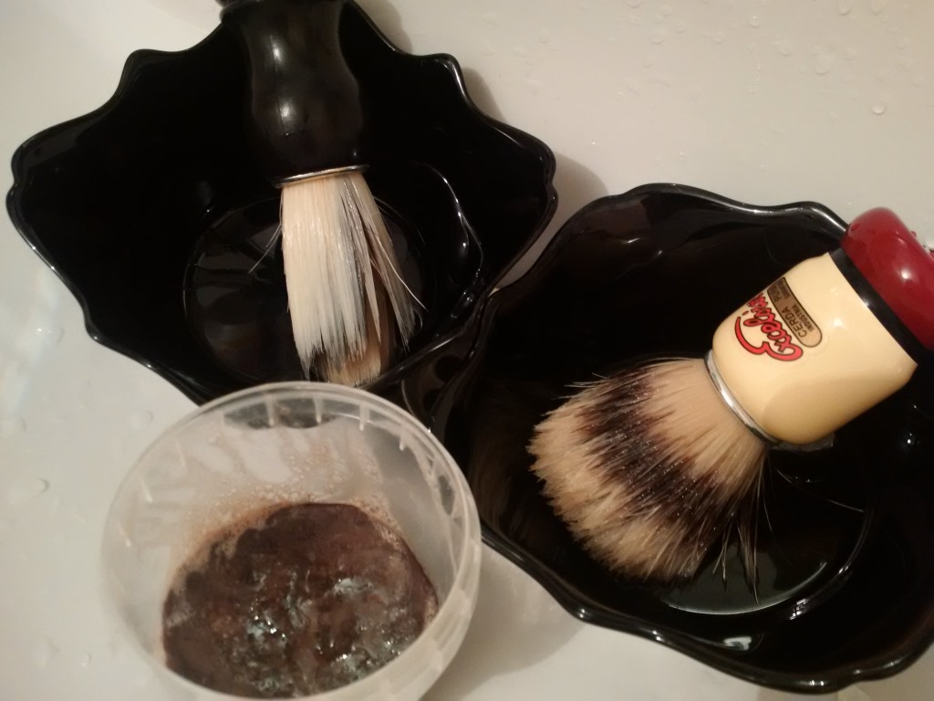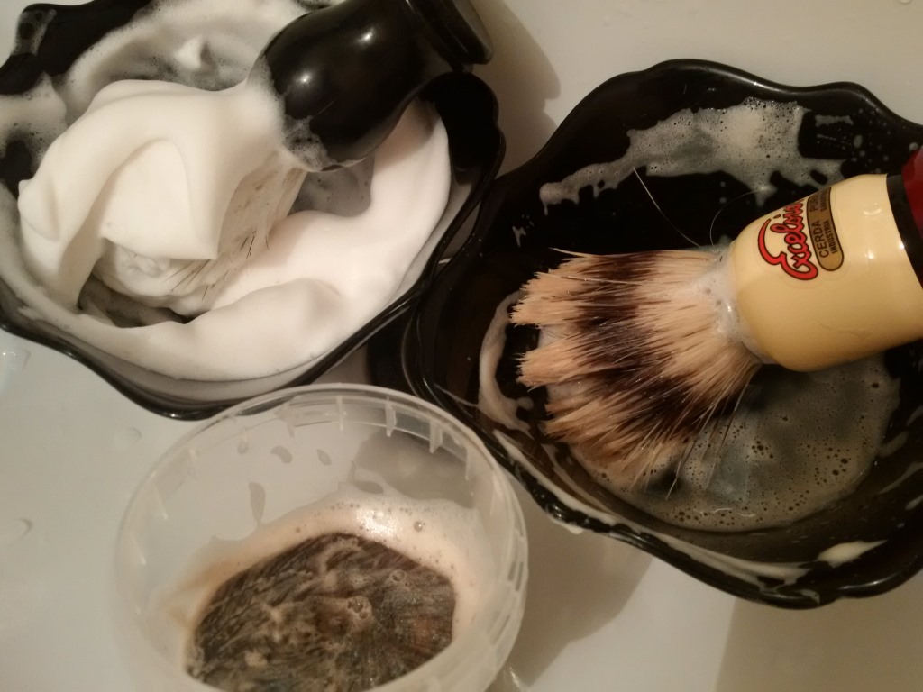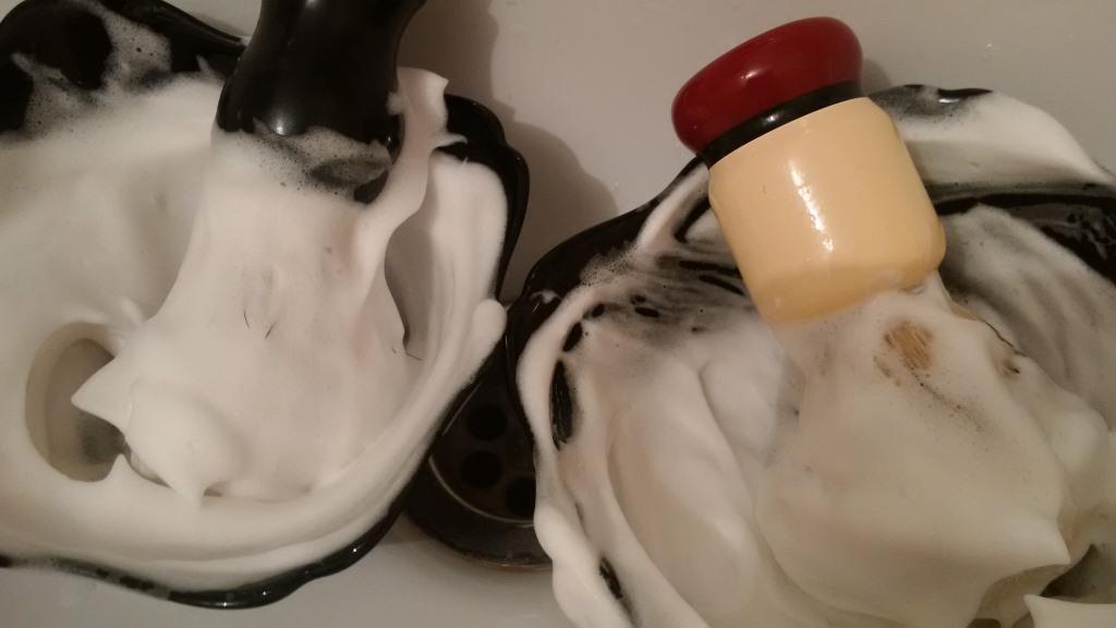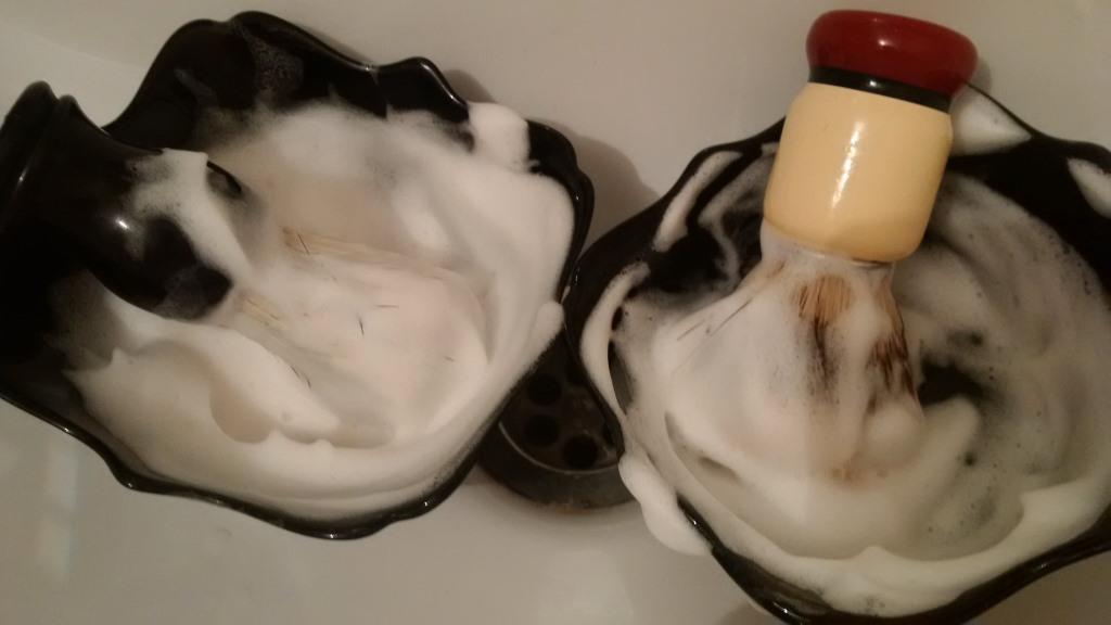 Опять я со своими помазками... Добрый день, друзья Вторую неделю мучаюсь с вновьприобретенным помазком Севог - кабанчик. Тут уже обсуждались мои неудачи с китайским барсуком, обзывали его собакой, советовали купить фирменное мыло и крутой фирменный помазок и не компостировать мозги форумчанам. Суть проблемы: ни китайский барсук (может подделка, не спорю), ни фирменный кабан не дает нормальную пену. По крайней мере по сравнению с дешманским синтетическим помазком нонейм за 65руб. из ближайшего хозяйственного магазина. В целом, если использовать крем Знахарь или крем Арко в тюбике и наводить пену сразу на лице, то пена получается. Очень сложно, далеко не идеальная, остывает на помазке в середине бритья, не стойкая, но худо-бедно (например в командировке без скаттла, взбиватя перед вторым проходом заново) бриться можно. Но с пеной взбитой в скаттле помазком за 65р. – не сравнить. Скаттл в командировку не потащишь. Перфекционизм рождает зуд в руках. Хочу, что бы кабаном получалась пена как на лице, так и в чашке. Подозреваю, что что-то делаю не правильно. Народ ведь бреется и кабанами и барсуками, всем доволен. Решил сделалать фото Show Видео снять не удалось, сделал фотки. Итак, вводные: 1. Помазок синтетика неизвестного китайского производителя. Очень жесткий, на лице им взбивать пену очень больно. Прошу обратить внимание, что синтетики от многих брендов (Омега например) значительно мягче и про них речь не идет. 2. Помазок Португалия кабан бренда Севог, модель не помню, но если надо найду. В меру мягкий на лице, как раз то, что мне надо. Не воняет, не лезет. Интересен, тем, что им можно дополнительно делать массаж щетины уже на лице. 3. Мыло Malabar для бритья. Я отчитывался, что часть его немного модифицировал (+глицерин и чуть геля для бритья Нивеа) http://britva.ru/forum/viewtopic.php?p=158346#p158346 4. . В этом тесте – остатки мыла, в первозданном виде. К слову, в модифицированном мной мыле пена более стойкая, долго работает на лице, не сохнет. Но объем создаваемой пены для модернизированного и обычного мыла Malabar – одинаков. В конце теста применялось самодельное мыло, которое выдала жена, английская основа, какие-то добавки. Могу уточнить, но, имхо, не суть. Помазки замочил, миски взял одинаковые на кухне, что бы условия были похожие. Мыло Malabar чуть намочил. Набрал на синтетический помазок, как обычно, совсем немного, просто потыкал помазком в мыло. Взбил пену, минуту, даже меньше. Пена получилась как обычно. Все хорошо, но хочется использовать кабанчика, а старый стремный и жесткий помазок отправить в помойку. Намазюкал кабана на уже размоченном мыле. Уже зная, что набирать мыла на моего кабана нужно очень много – мусолил помазком по мыло очень долго, с запасом. Для эксперимента, конечно, не хорошо, условия немного не одинаковые, объем набранного мыла на кабане намного больше. Но если на синтетику набрать столько мыла, сколько набрал на кабана, то синтетика выдаст пены с литровую миску. на фото кажется, что мыла не много, но реально в помазке просто немеряно мыла. Намного больше чем во всяких обучающих видео и фото в интернете. Пена получается куцая, вся внутри помазка, взбиваю секунд 30 После 30 секунд она просто разваливается. ЕЕ просто нет, вода. И в чашке и в помазке. Почем это происходит? Уже и больше и меньше воды набирал в помазок. Суше помазок – пена в принципе не взбивается, больше – п
