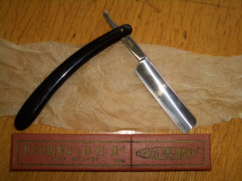Купил на молотке бритву ОКА Вача 56 год,было заявлено-"складское хранение".Как-то не верилось.Сегодня открыл посылку и точно-маленький кусочек 1956 года.Завёрнутая в промаслную бумагу совершенно не троганая бритва и коробочка .Что за склады такие?