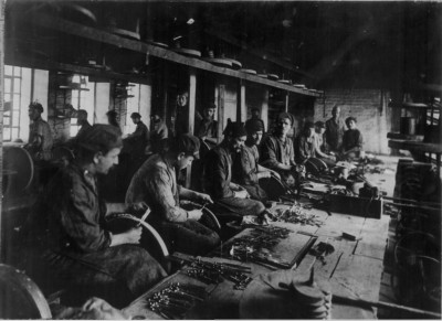 Горбатовский уезд, с. Павлово. Производство бритв. . увеличил, видно, что мальчик ставит заклепки. . фото из Нижегородского государственного историко-архитектурного музея-заповедника Павлововские кустарииз "Производительные силы Нижегородской губернии, Выпуск 3, 1926 год"