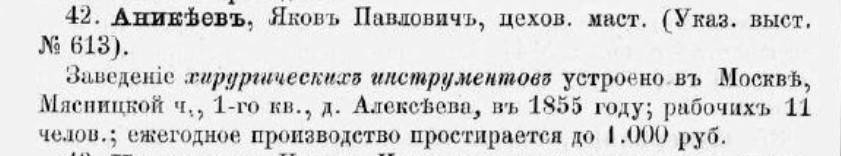 В книжке Заворотько "Русский нож" в списках участников пятой Московской выставки русских мануфактурных произведений 1865 года нашелся московский цеховой Аникеев Яков Павлович.