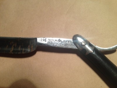 Прошу Вашей помощи в определении возроста и производителя данной бритвы. На хвостике бритвы стоит клеймо: "MOLNAR STEPHAN" "SUBOTICA SZABADKA" Гугл подсказал, что Суботица (SUBOTICA) - это городок на севере Сербии, а SZABADKA - это эквивалент на хорватском языке. Рукоять скорее всего не родная, при открывании бритвы выгибается вовнутрь. Кто нибудь сталкивался с данным клеймом? Спасибо. С уважением.