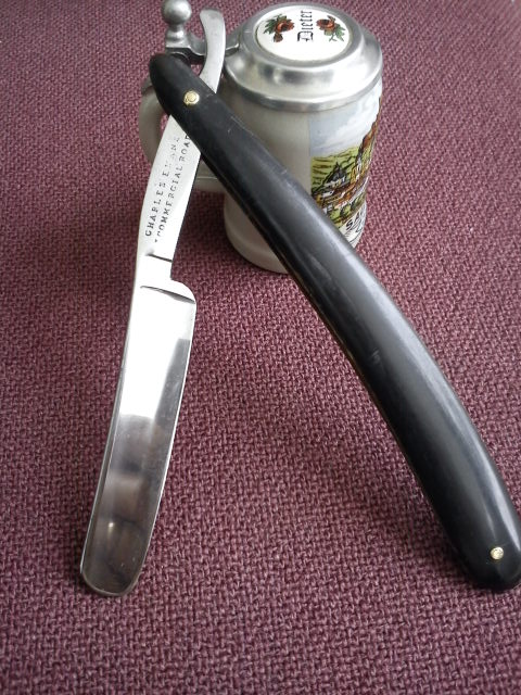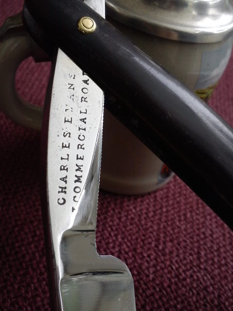 CHARLES EVANS.Вот такой экземпляр попался...обушок 5мм,а ширина лезвия 15мм...Вопрос ..пациент умер?(бритва сточена)...Эрль не пропорционально к лезвию широк....в помойку его