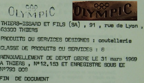 Re: OLYMPICНа одном форуме пишут, что французские производители использовали немецкие ТМ, такие как: "Olympic, gehärtet und geschlagen in Solingen". В частности, Olympic TM использовался компанией Pierre Thiers & Fils.