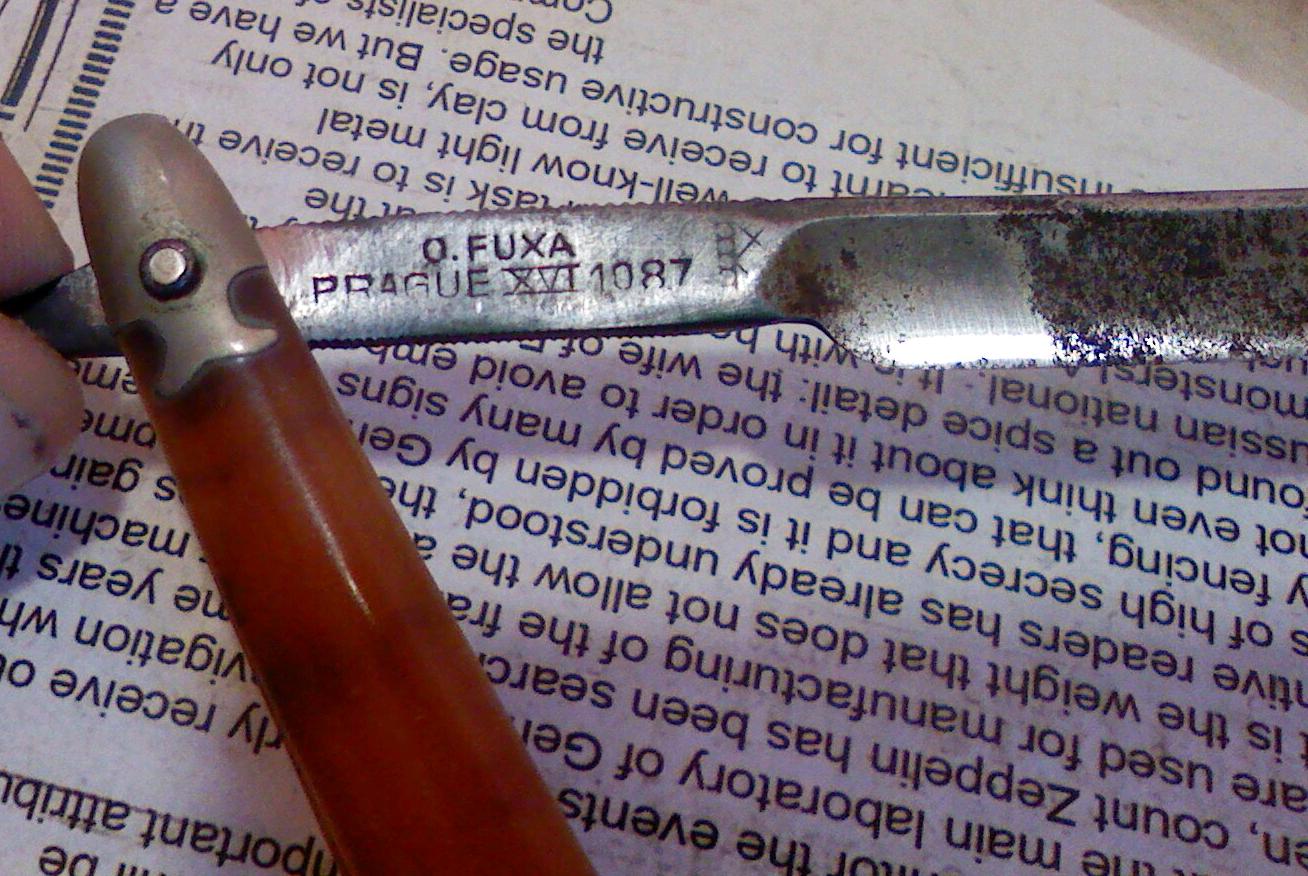 O.FUXA из Праги, хозяин какой-нить скобяной лавки... Кстати, поиск показывает, что это весьма распространённая в Чехии фамилия. Ремонт опасных бритв, звонить с 11-00 до 23-00, +79267729357, (whats app, telegram, VK), спросить Олега.