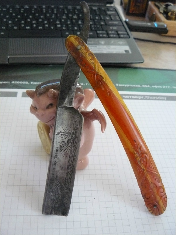 Re: NAJEEB MALLUK& COОчень красивая и изящная бритва. Носок лезвия очень элегантный и гравировка просто прелесть, морская тематика. Очень понравилась вещища