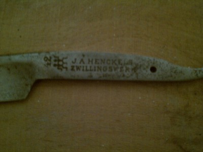 Re: Бритва без имениКажется бритву сточили с острия + с головки (ну там сколы может были), судя по длине полотна, а так же форме пяточки. Я бы не стал думать о восстановлении безродного сточенного больного, хотя если не жалко времени, сил и денег, почему бы и нет.