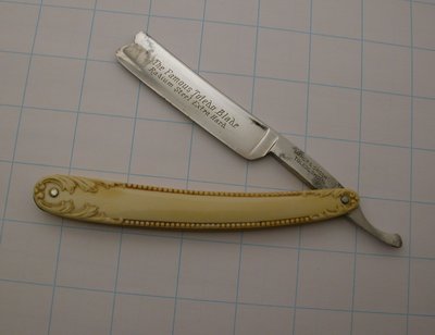 MAHER & GROSH TOLEDO, OHAIO. The Famous Toledo Blade Radium Steel, Extra hard Материал рукояти - имитация слоновой кости. Ещё один экземпляр выставлен на ebay. Там фото много хуже, но с обоих сторон и с коробкой. Цинизм - это способ спокойно принимать жизнь такой, какая она есть.