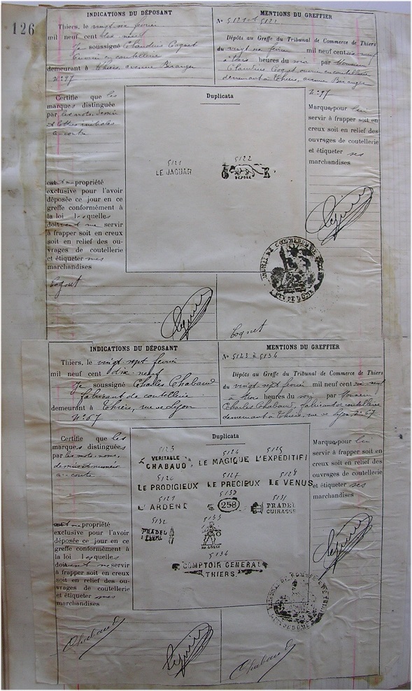 Вот еще немного: The brand owned by Joseph Champredon Cognet of Thiers. Надо талмуды поизучать, может по нему новую тему создать получится.