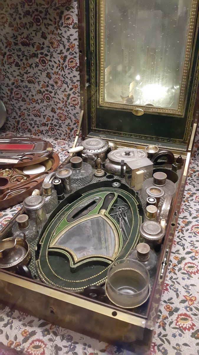 Недавно побывал во Франции. Помимо других интересных мест посетил дворец Фонтенбло (Château de Fontainebleau). И там, в музейной экспозиции обратил внимание на интересный экспонат - походный несессер Наполеона, а рядом с ним еще и что-то типа походного умывальника с зеркалом.