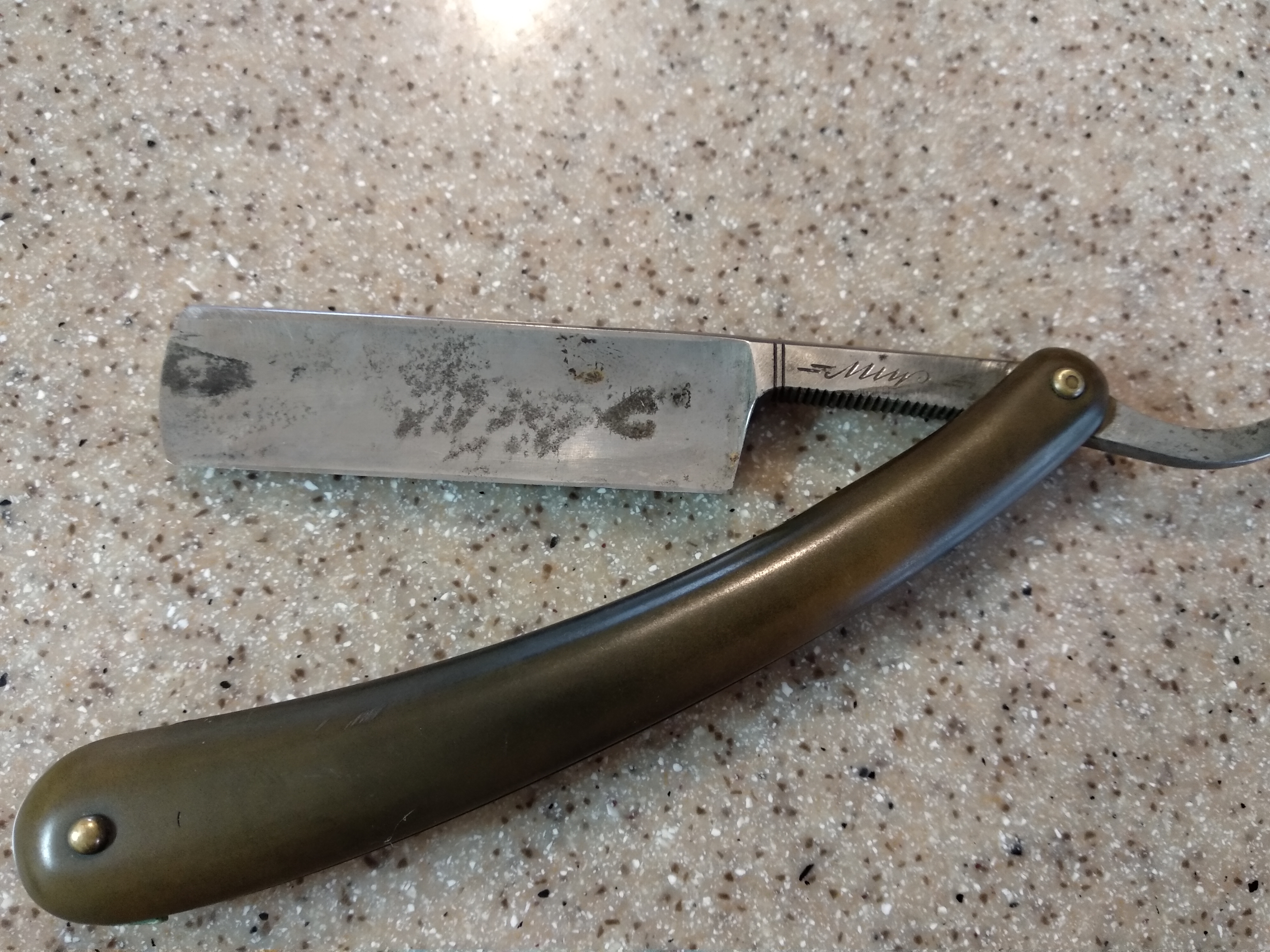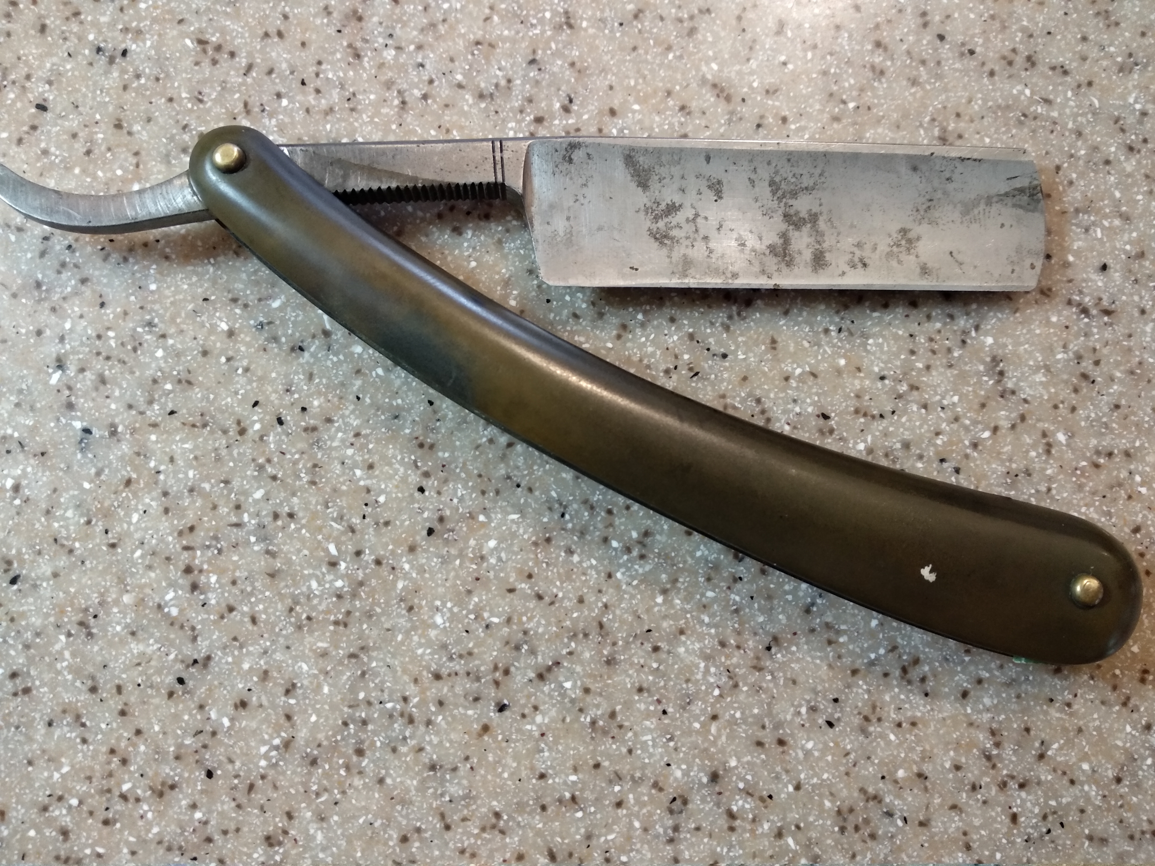 Что это? Самоделка или заводская? Размеры для советской бритвы впечатляют. Ширина полотна-22 мм Обушок-5.5 мм Полуклин. Не чистил пока. Хотел зафиксировать бритву в исходном состоянии. Что интересно,сделано все очень достойно и аккуратно,с сохранением основных пропорций. Выдает, конечно ,кустарно сделанная ручка,не клиновидная вставка и пины. Не видел никогда таких . Есть мнения? Всё будет ХОРОШО...тел:+79065827134