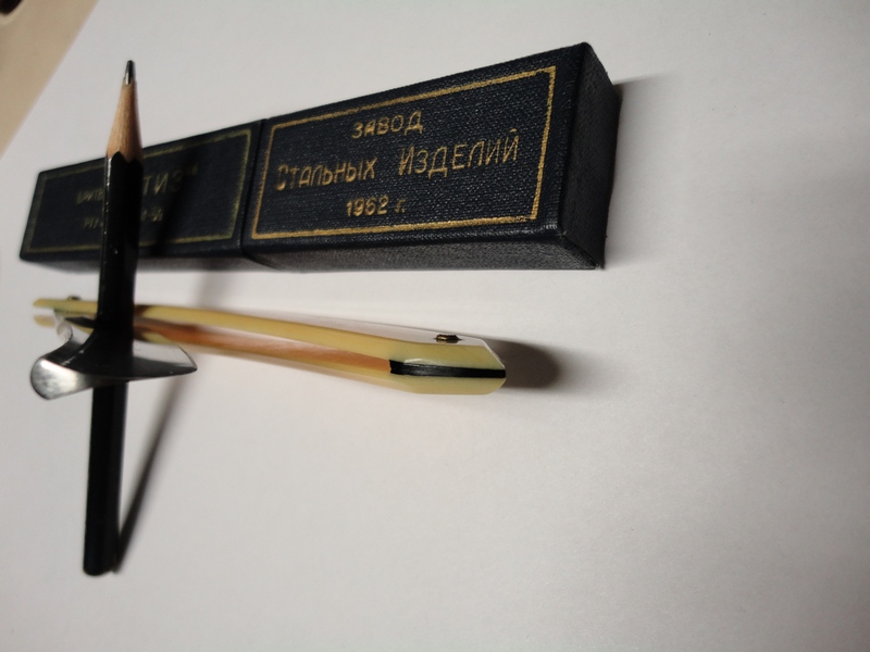 Спорт 1956 года выпуска - или вообще заводская заточка или точили буквально 1 раз и очень аккуратно, но склоняюсь больше к заводской. В комплекте и родной футляр того же 1956 года в таком же состоянии.