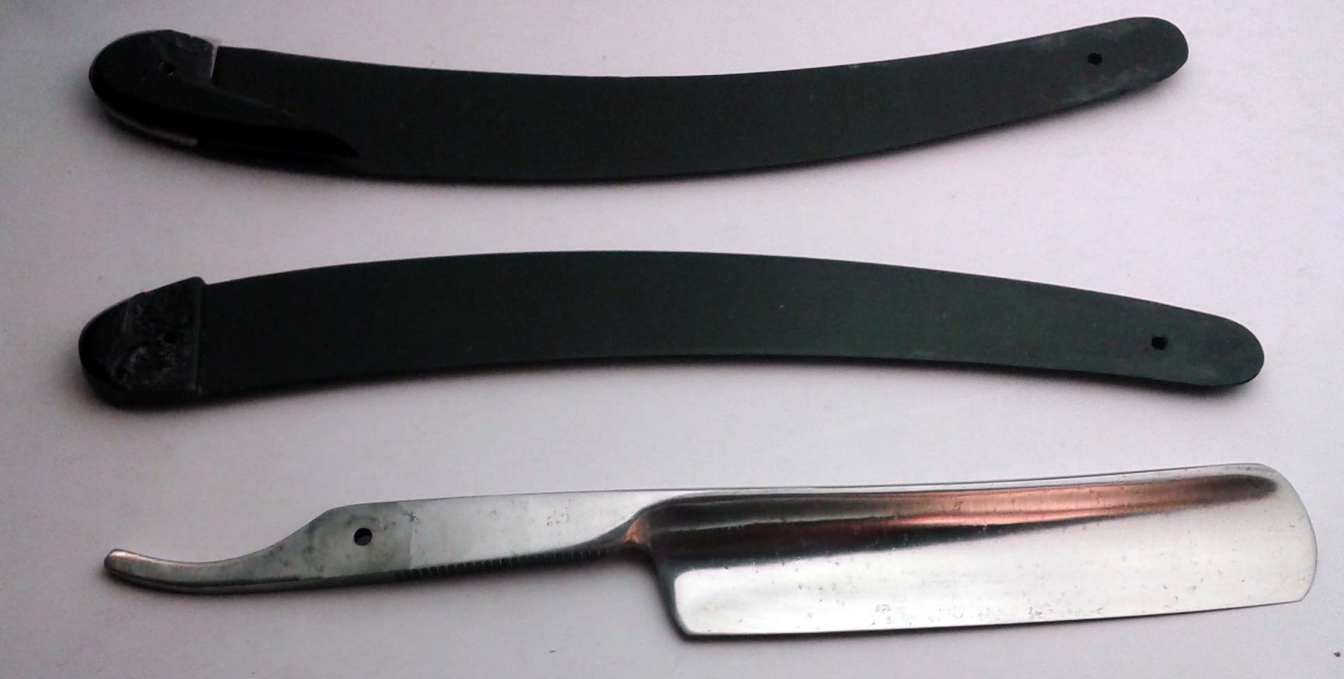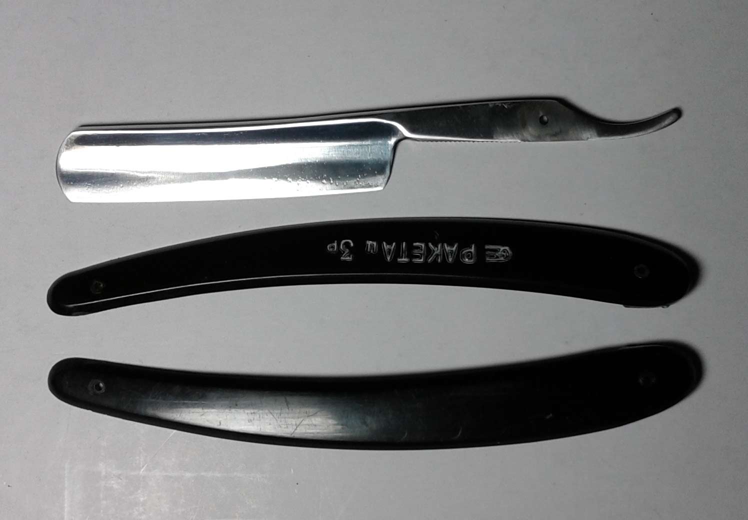 Потенциальная бритва - полотно от бритвы Заря СТИЗ 70-х (ничем не отличается от Ракеты тех же годов), 2 половинки ручки.