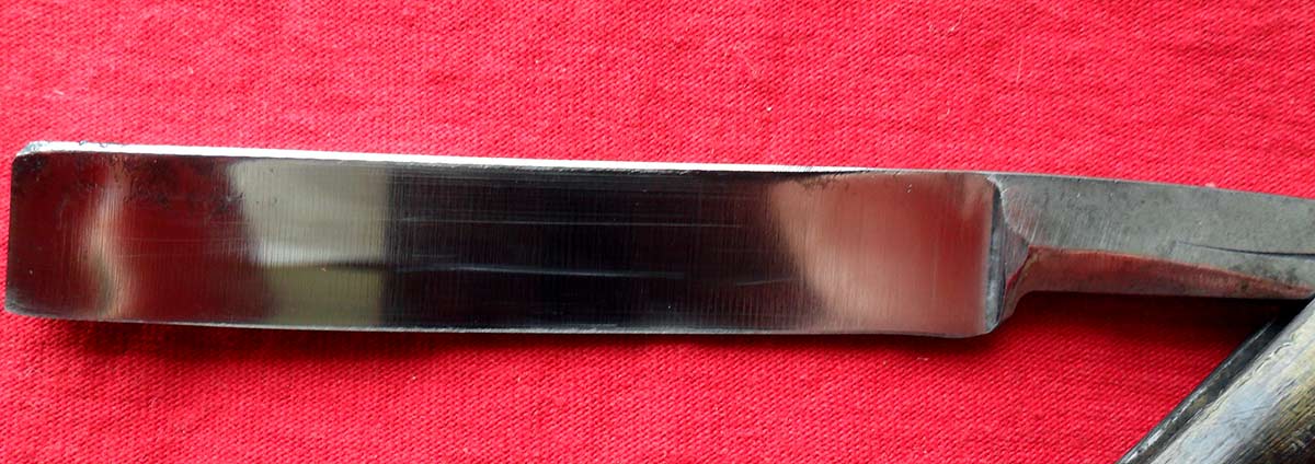 Ручка - рог, поверхность не гладкая, но особо сильных трещин и деформаций нет, есть мнение, что после обработки наждачной бумагой примет вполне приличный вид.