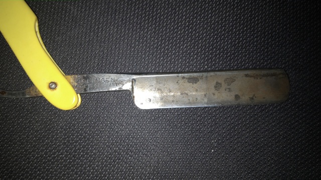 Как я понял, бритвой если и пользовались, то несколько раз максимум, и вроде как никогда не точилась. Лежала себе и тихонечко ржавела (причем по незнанию родителей, определивших ей место в ванной на полочке). Вот так долго ли коротко попала она ко мне. С чего и началось моё знакомство с этим миром ))) Решил я её для начала просто почистить,в ходе чего появилось желание и довести до ума (чем сейчас и занимаюсь, пытаюсь). Собственно возникло несколько вопросов к знатокам: 1. Нигде более не встретил бритву с такой формой рукояти (всего одна заклёпка, как бы закрытая рукоять и в сложенном виде вставляется в пластиковый футляр). Это просто придумка производителя к конкретной модели или некая разновидность, имеющая своё название и т.п. ? 2. Продавать не собираюсь ибо память и всё такое, но ради любопытства интересно знать её примерный возраст и ценность, как экземпляра. 3. Про сталь кое-что находил, примерно имею представление, но интересный нюанс не даёт мне покоя: сегодня худо-бедно я довёл её до состояния "рискнул побриться". (Спасибо, получилось, всего 2 порезика Спасибо за внимание. з.ы. если что не так оформил - простите, первое сообщение. С уважением, Евгений.