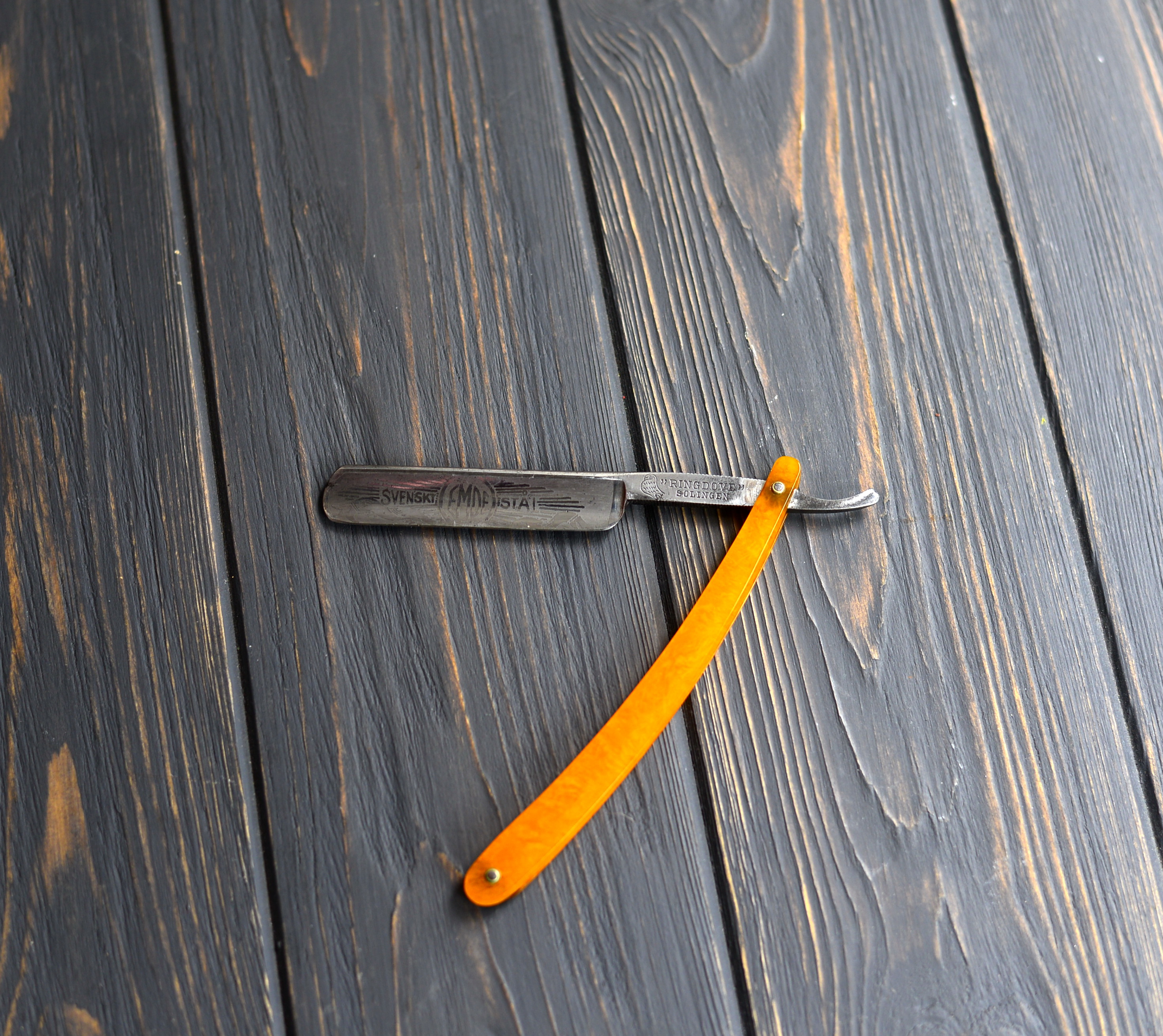 Бритва Solingen Ringdove CMDE20-е годы, одно из экспортных производств для Швеции. Делалось всем кагалом в Золингене без какого-то конкретного производителя - клинок там, шлифовка здесь, сборка - ещё где. Массовое производство. В 20-х Германия - это как сейчас Китай была