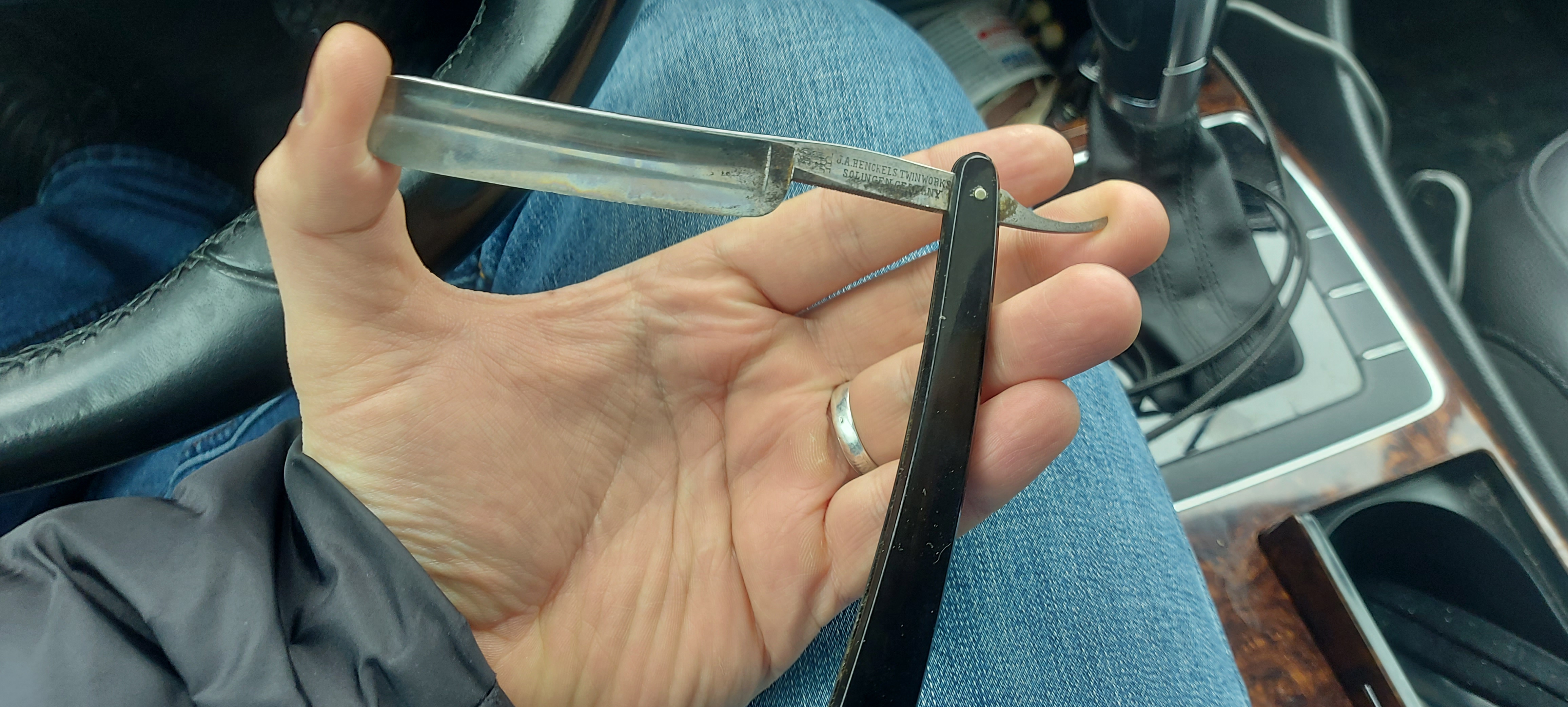 Опасная бритва воздушного аса Зайцева Василия Александровича полковника Советской Армии, участника Великой Отечественной войны, дважды Героя Советского Союза. В ремонт привозил правнук.