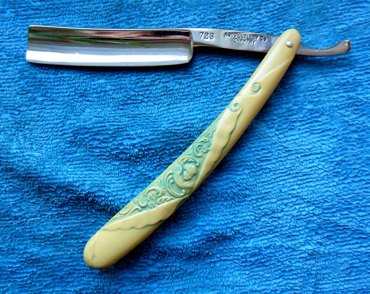 Надпись Asco Cutlery Germany. Информации о ней в инете нет, нашел только 3-4 разных бритвы. Ручка родная, т.к. тут есть фото http://www.ebay.com.au/itm/Vintage-Asco ... 0828416790" onclick="window.open(this.href);return false; другой модели этой же фирмы. Предполагаю, что бритва произведена до 1921 года. Так как есть фото бритвы Asco Cutlery http://strazors.com/index.php?id=268&do ... co_germany_" onclick="window.open(this.href);return false; На этой бритве мы уже видим "Made in Germany", т.е. она была произведена после 1921. Моя скорее всего до 1921, раз еще ставили "Germany".