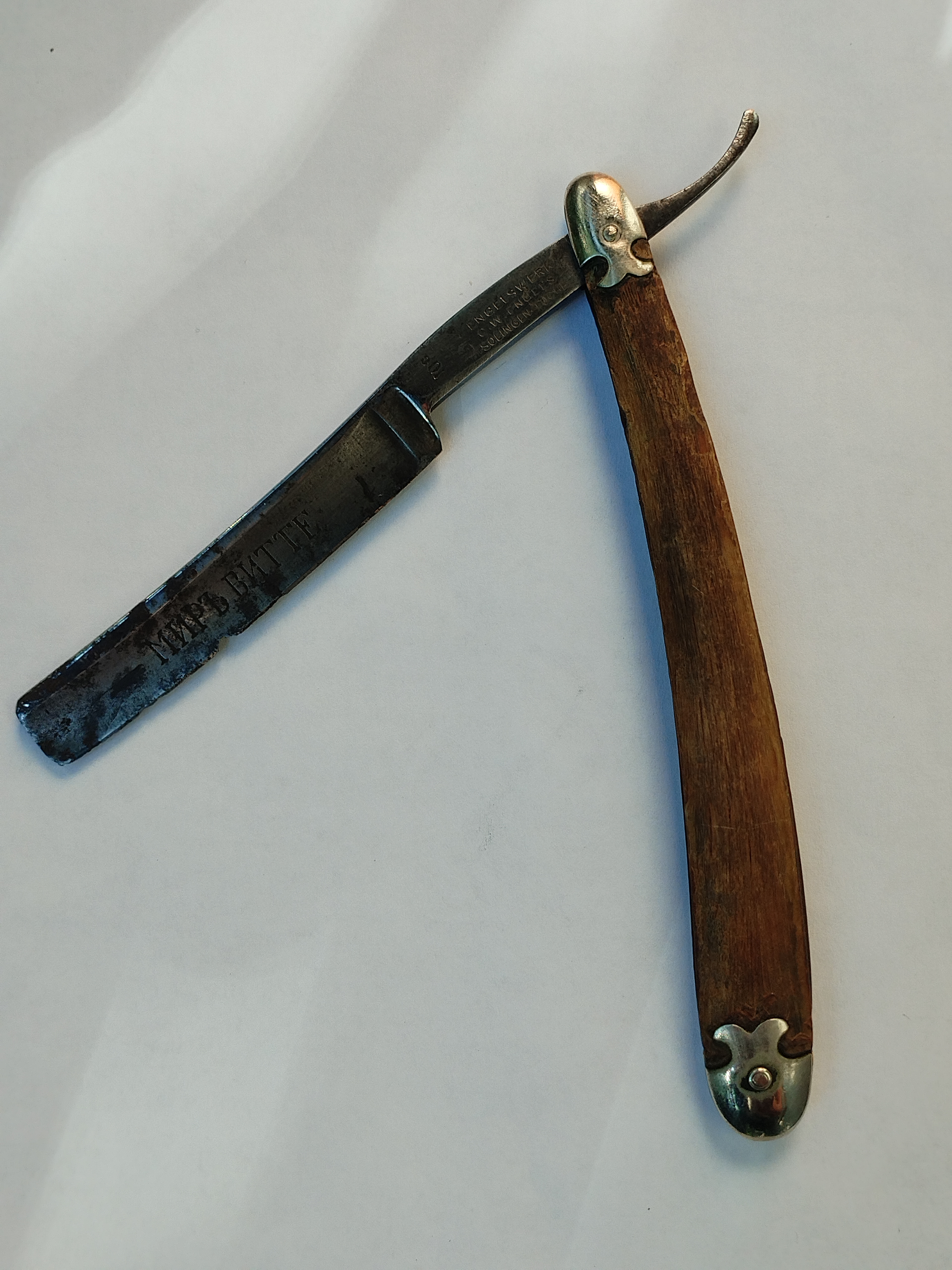 :Год выпуска предположительно 1905г.В то время данная фирма открывала филиал в Америке. Бритва продавалась или вручалась нашим либо морякам либо участникам подписания мирного договора с Японией в Портсмуте США 5 сентября 1905 года между Россией и Японией.