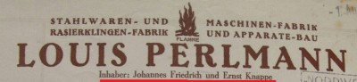 - В начале 1920 годов новые владельцы расширяются, покупают фабрику в Золингене (Blumenstrasse 91) и регистрируют свой бизнес в США. Johannes Friedrich ведёт бизнес как Louis Perlmann, Лейпциг). Из патентного журнала (продукция - всевозможные ножи и ножницы. Бритв нет):