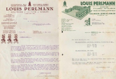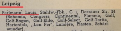 С середины двадцатых и до 40х в шапках счетов-фактур и прочих документов указывают три города: Louis Perlmann Solingen-Leipzig-Berlin.