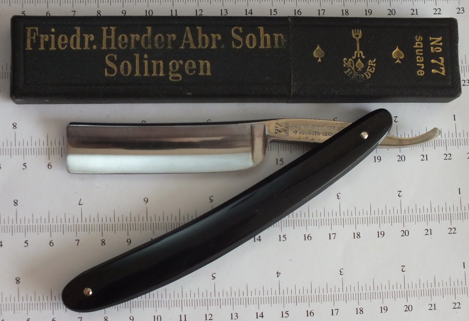 F. Herder Abr. Sohn N°172, 6/8. Досталась много лет назад на барахолке в грустном состоянии с побитой целлулоидной рукояткой наихудше возможного золингеновского дизайна.