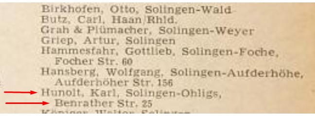 из Adressbuch des Eisen- und Stahlwaren-Handels, Том 8 (неизвестного года) . адрес: Solingen - Ohligs, Benrather str, 25