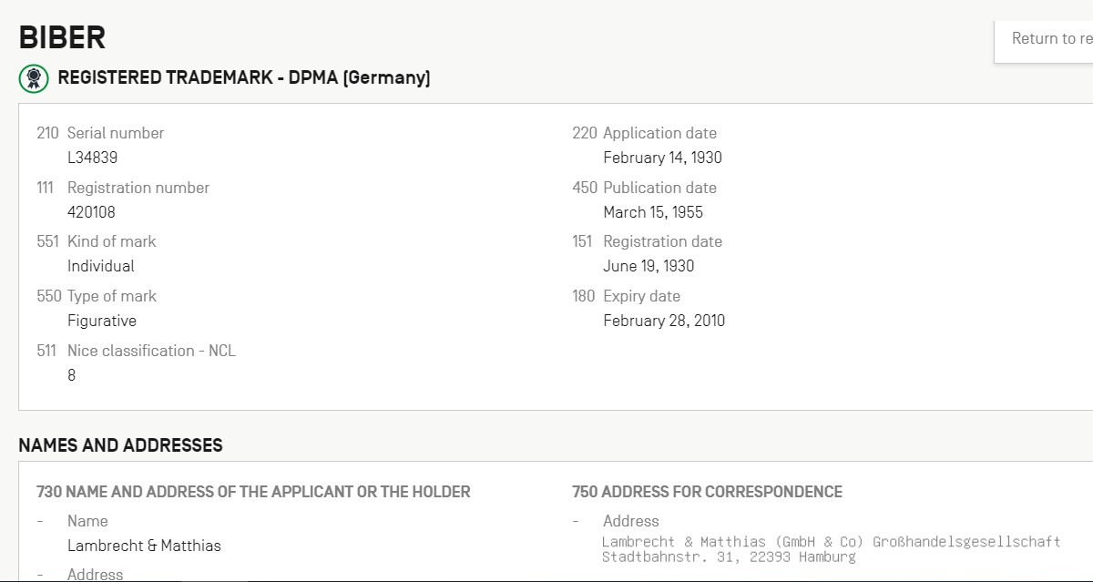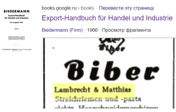 Lambrecht & Matthias gmbh, Hamburg Производство ремней, кистей и другого сопутствующего товара для бритв и бритья. торговая марка Biber зарегистрирована в 1930 году, перерегистрирована в 1950 Spoiler Show жаль полноценного доступа нет к гугл книгам: