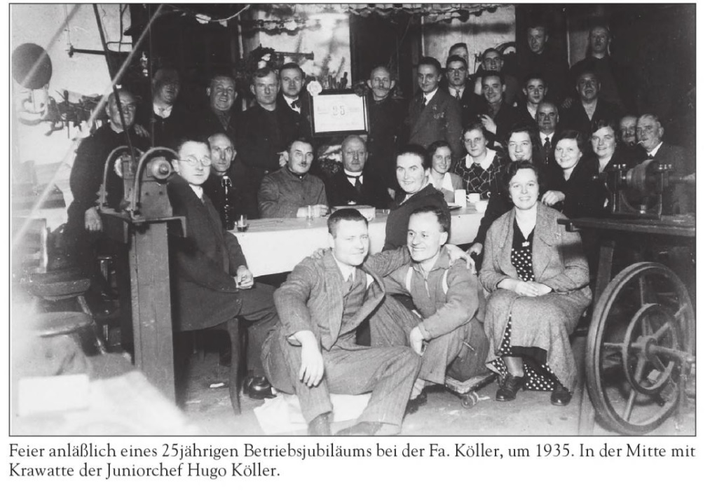 Под фото написано: 25-летие фирмы Koller, в центра в галстуке младший босс
