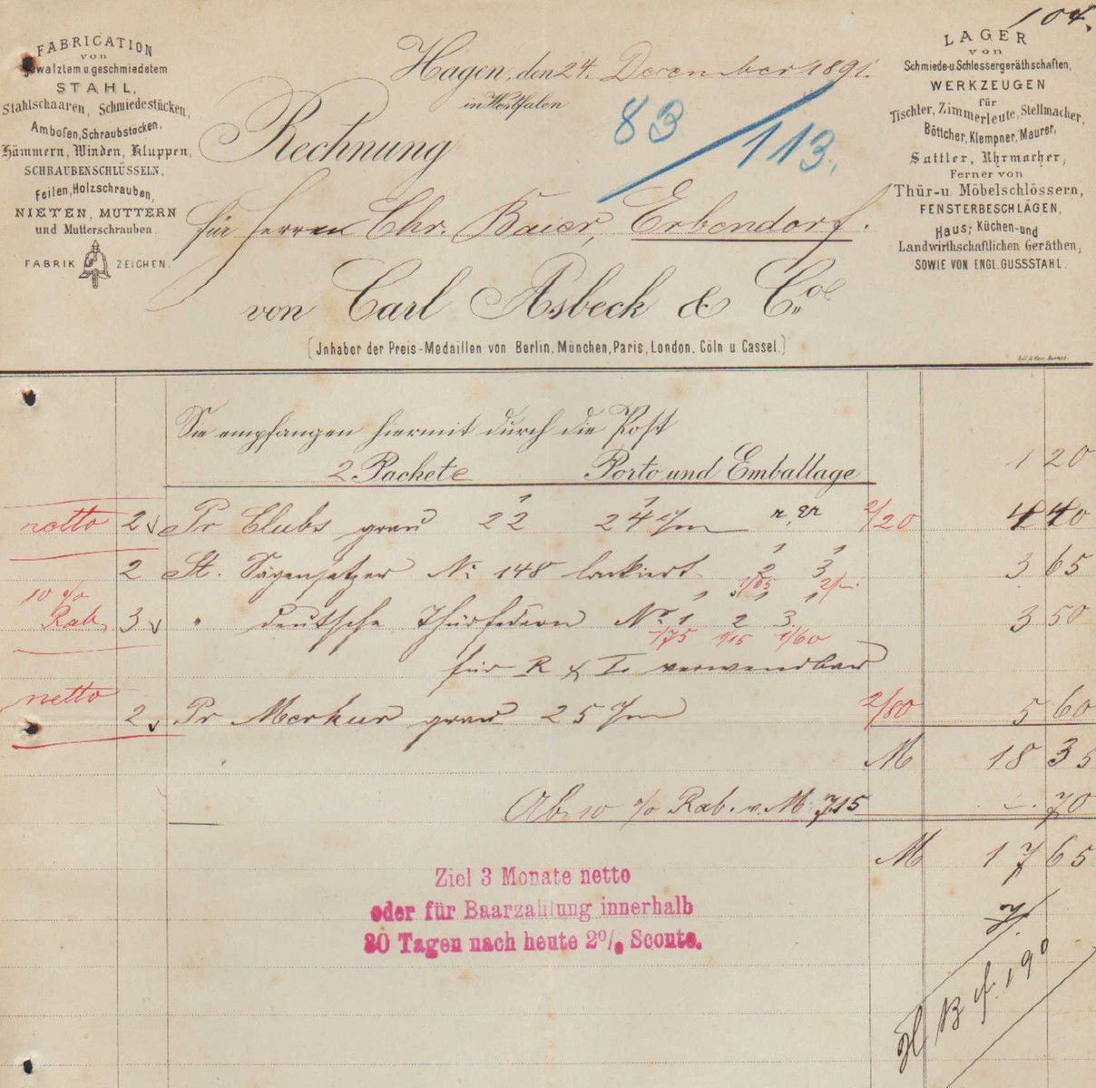 Кантарики С - образные фирмы "CARL ASBECK & Co". Клеймо - "Шлем". HAGEN, Rechnung 1891, Fabrik für Hämmer, Ambosse, Kluppen, etc. Carl Asbeck & Co 45 CARL ASBECK SOLINGEN-AUFDERHOHEЯ бы дал приз - "За волю к победе!" За 10 лет не забыть тему о своей бритве!