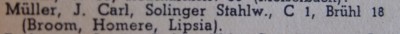 Копнули дальше - фабрика в Золингене. Это запись из DMA 1937 года. И тут отсылка к Золингену. J Carl Muller торговые марки: BROOM, HOMERE, LIPSIA Вопрос остается открытым - это их собственная фабрика или просто по договорам работали, но это , я думаю, не существенно. Кто сейчас на конференцииСейчас этот форум просматривают: нет зарегистрированных пользователей и 15 гостей | |