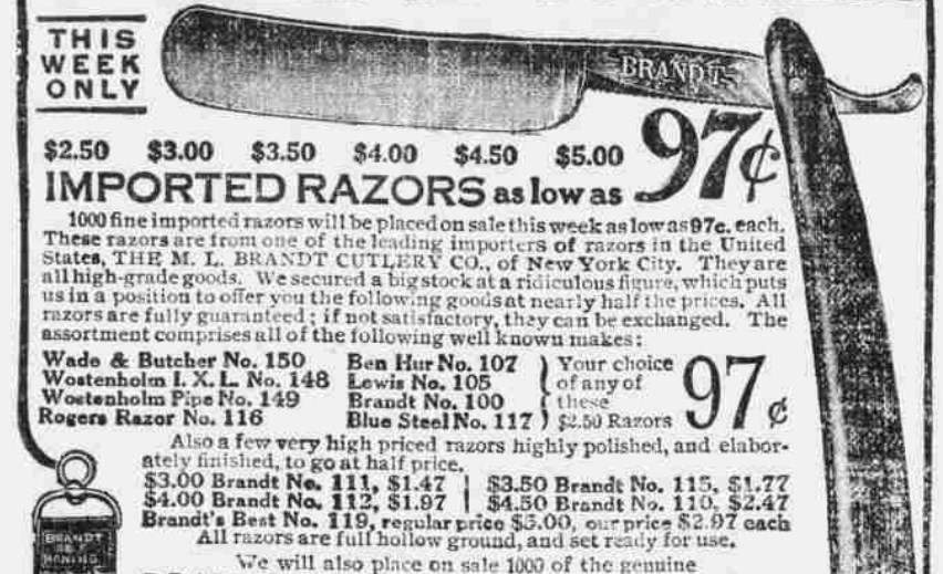 а Brandt был в общем списке импортируемых бритв для продажи. А под своим именем ( M.L. Brandt Co.) продавали стропы