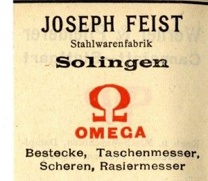 Re: Joseph FeistКомпания Joseph Feist была в бизнесе 1898-1924. Расположена в № 18 Dolnerstrasse, Золингене. Торговые марки: Blenda, Glücks-Messer, LA SEMEUSE, MPN, OMEGA, SOSIMA, VIOLET, WANDERHEIL. Производила ножи (перочинные "карманные"), бритвы, столовые приборы, ножницы. http://www.archivingindustry.com/cutler ... makers.htm Так что - выпуск около 1922 года. Вещь! Фабрика Йозефа Файста — «OMEGA» — была основана в 1864 году, в 1888 году носила название «Joseph Feist Nachf. Omega — Werk» (наследники Йозефа Файста). Фирма выпускала широкий ассортимент товаров, имела торговые связи с Польшей и Россией. Поскольку семья Файст имела еврейские корни, в 1941 году фабрика была национализирована нацистским правительством, а ее члены эмигрировали в Лиссабон, где проживают до сих пор. С 1941 года фабрика носила название «Omega-Werk Hartmann&Co», c 1997 года – «Omega Herbert Kleber», в 2003 году она еще раз сменила владельца. До последнего времени производила дешевые кухонные ножи, экспортировавшиеся в Турцию. В 2013 году фабрика прекратила свое существование. 21 октября 2013 года оба ветхих здания фабрики постройки 1900 года были снесены. http://muzei-nozhnic.ru/nozhnicy-dlya-v ... vejcariya/