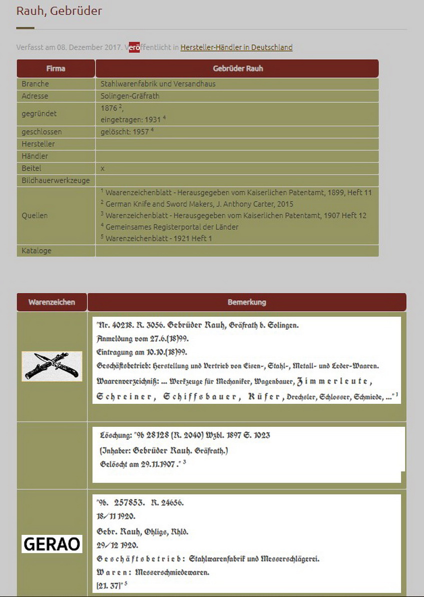 Gebrüder Rauh, Solingen-Gräfrath фuрма была основана в концe 19 вeка.